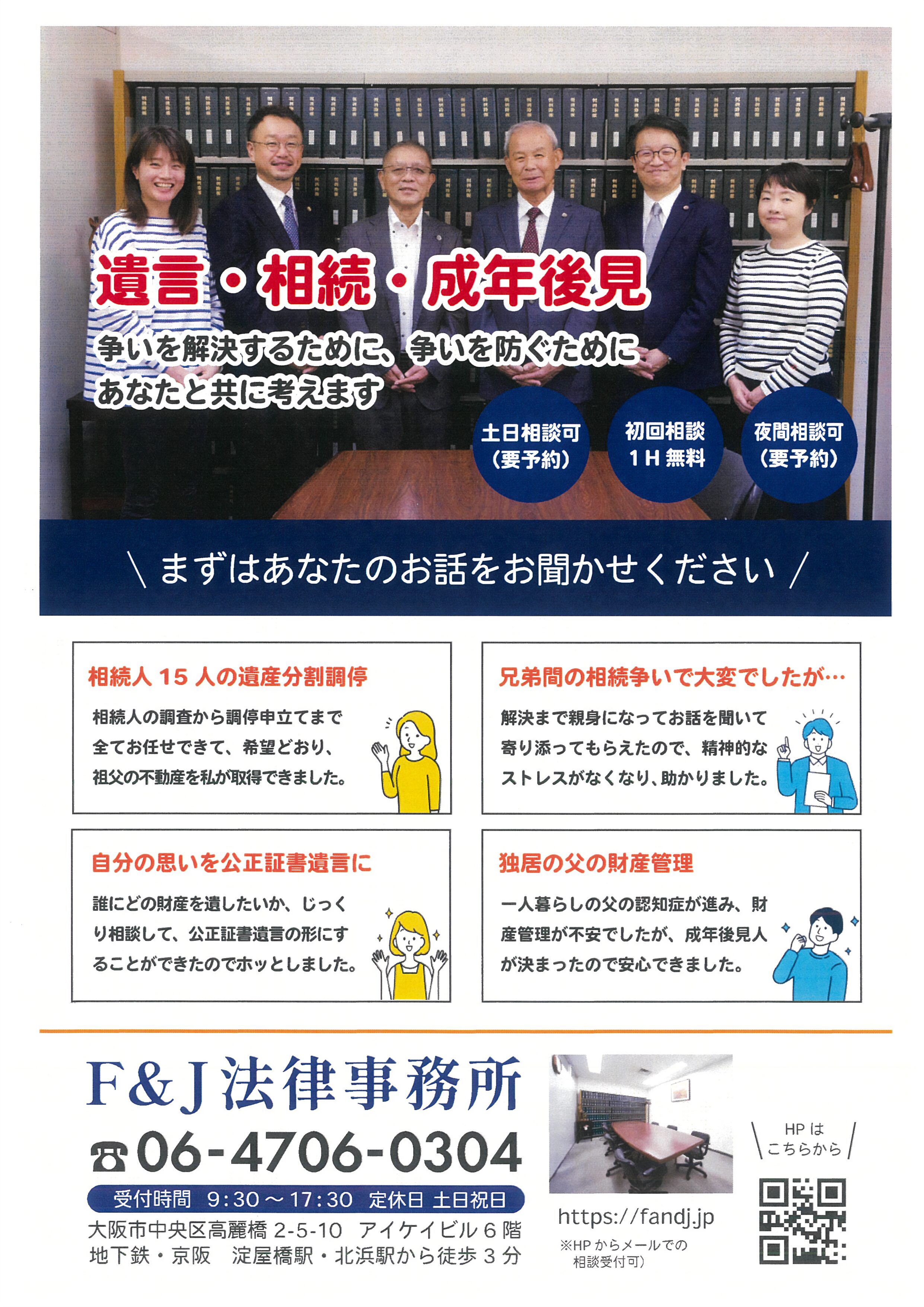 西淀川区役所相続ガイドブックに弊事務所の広告が掲載されました 2025年10月15日 最終更新日時 : 2025年10月15日 coconala_law 西淀川区役所相続ガイドブックに弊事務所の広告が掲載されました。